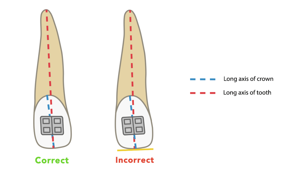 I hope this small piece of text and my illustrations are helpful. It is critical to angulate brackets to the long axis of a tooth. For more fundamentals on the straight wire appliance I highly recommend this classic book by Lawrence Andrews. No financial interests to declare.